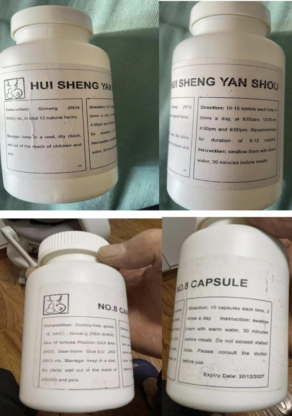 事后,王先生发现,这些药是无生产日期、无质量合格证、无生产厂家的“三无产品”,瓶身包装极为简易,仅贴有全英文成分介绍与使用说明,显示成分为人参、阿胶等传统中药材。服用2个疗程后,自己出现脸色发白、头晕等症状,腿部出现血点。2025年2月,他遂向当地有关部门举报。