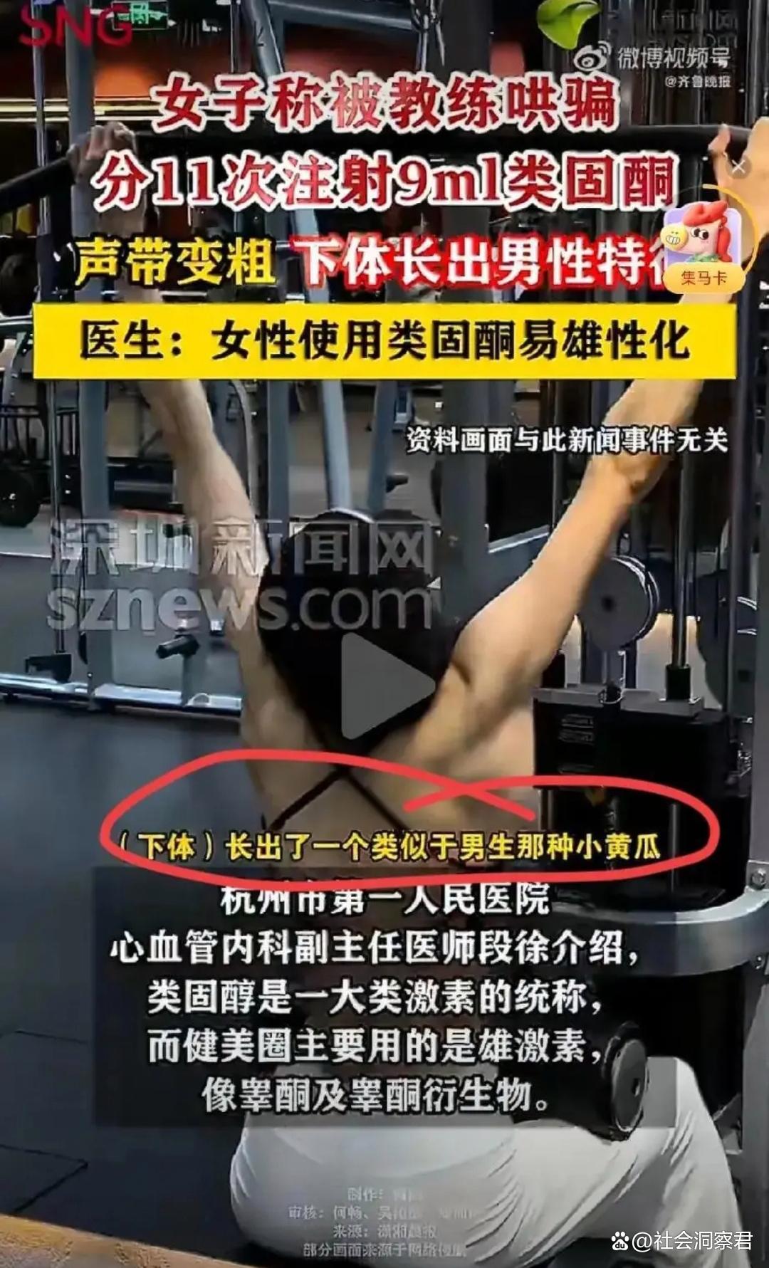 “太缺德了!”浙江杭州,女子去健身房健身,为了健身效果更好还找了名私教,万万没想到,私教哄骗她注射类固酮,打了11次后,女子突然发现自己雄性激素飙升,不仅长出喉结,下体还长出类似男性特征的“肉芽”,医生告诉她身体雄性化,女子瞬间崩溃。